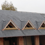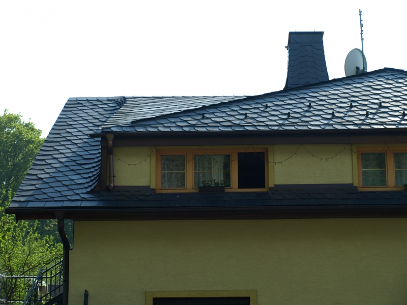 Břidlice na rozdíl od jiných střešních krytin umožňuje vykrytí atypických ploch, zejména oblých tvarů a detailů, které by jinak bylo nutné řešit oplechováním nebo obkladem z jiného materiálu. Celkový dojem podtrhují zejména vykrývaná úžlabí, komíny, vikýře, námětky nebo věžičky. Proti pádu sněhu doporučujeme kůlovou sněhovou zábranu, která je 100% funkční a současně dodává střeše přirozený rustikální ráz.
